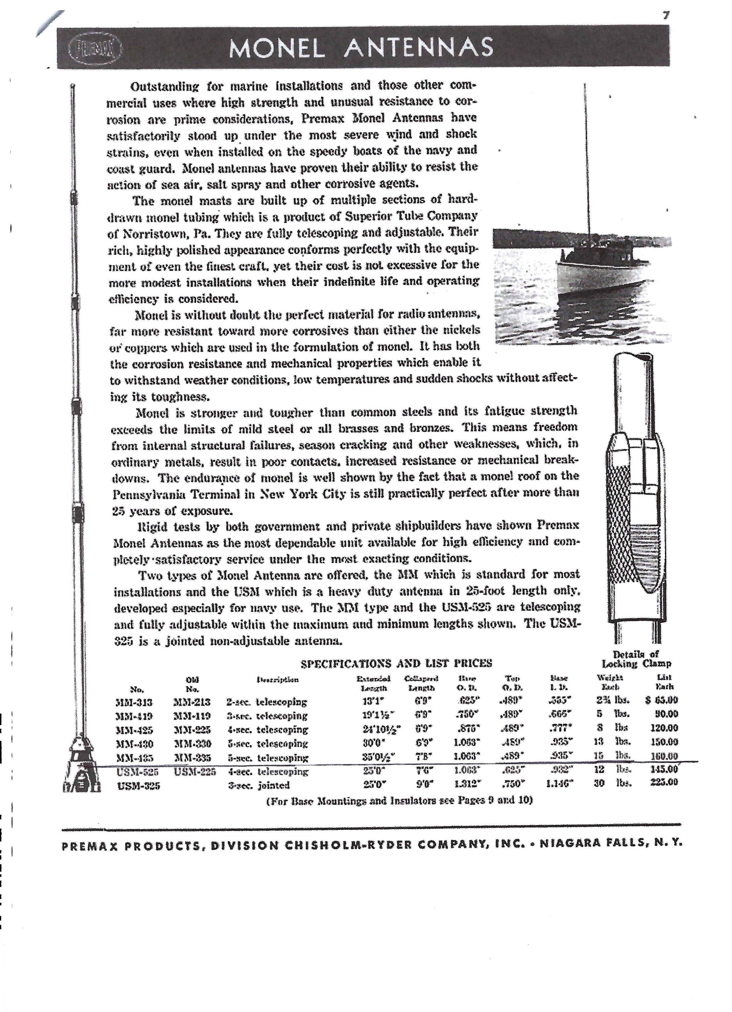 Monel MM-135 MM-335 (5) section telescoping antenna 35' 1/2" high fully extended ... see below:
