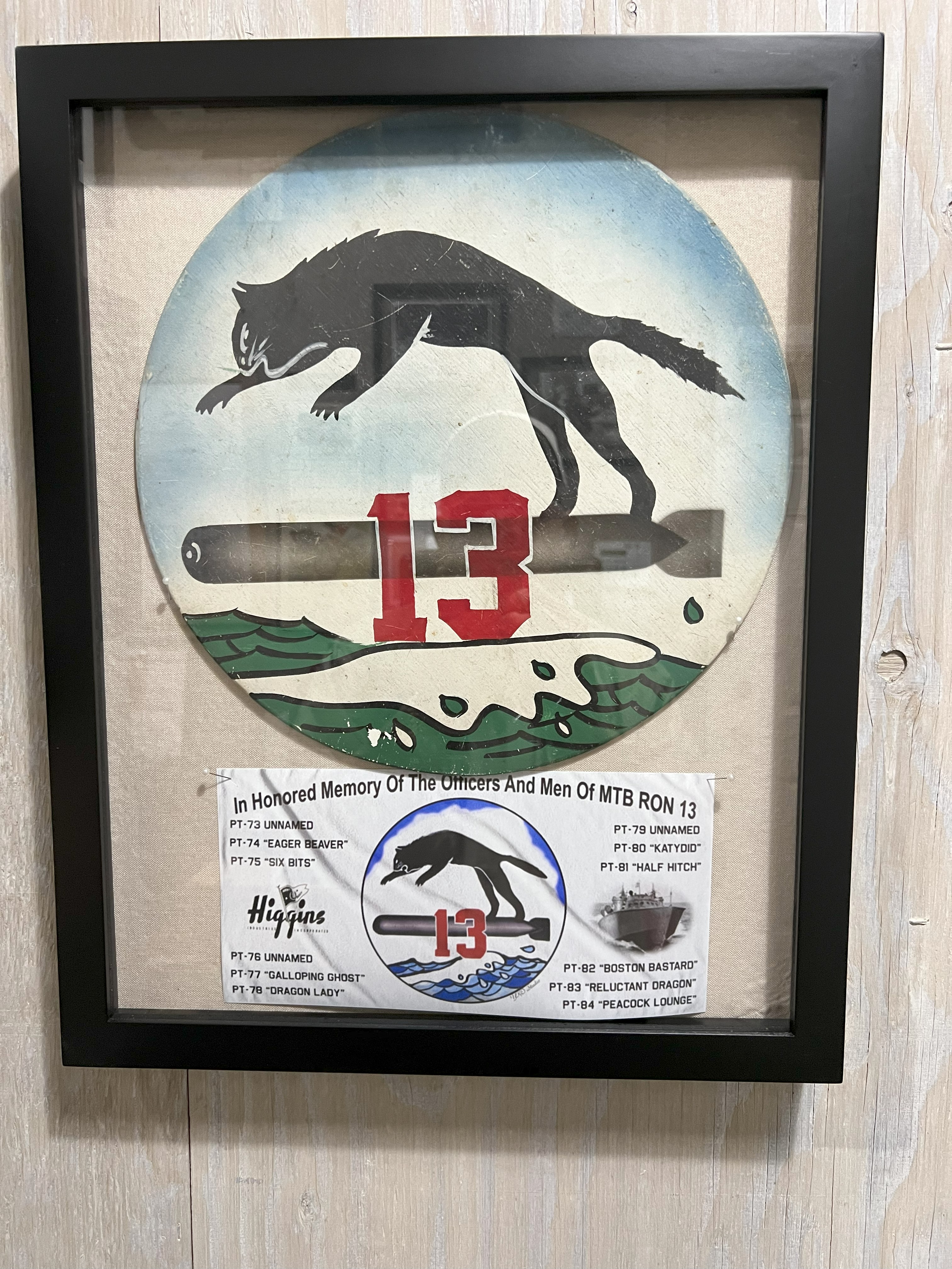 PT boats lost in enemy action display board designed by Steve Dietz in museum |